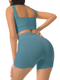 - Ribbed leggings and square-cut sports bra: Slim fit, tuck in and lift your hips perfectly to show your body curve. The special ribbed texture helps to keep it in place during exercise and is non-slip. There are two different collar designs, square cut and V-shaped.