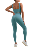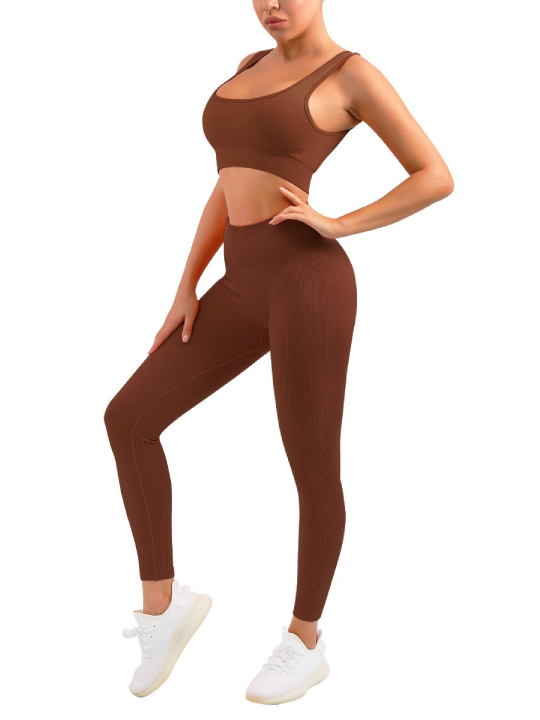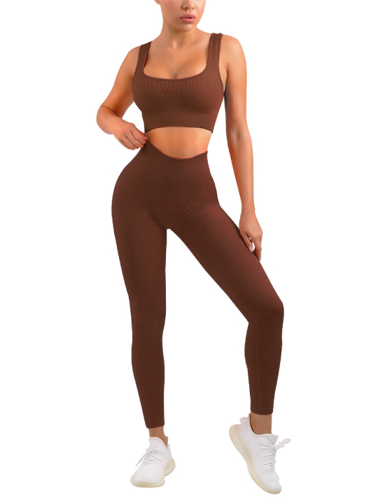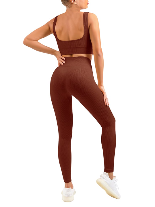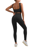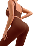 Women's Sexy 2 Piece Workout Suit-Seamless Ribbed Leggings and Square Cut Sports Bra Yoga Sportswear Set