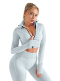- High-waisted leggings and crop tops: help show your body curve by tucking your abdomen and raising your hips. The front zipper and thumb hole make it easy to wear and comfortable.