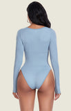 1 Piece Round Neck Long Sleeve Seamless Threaded Yoga Bodysuit