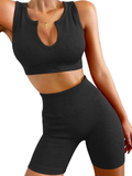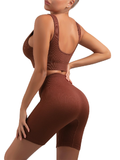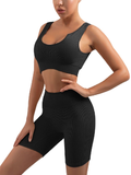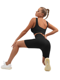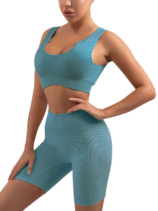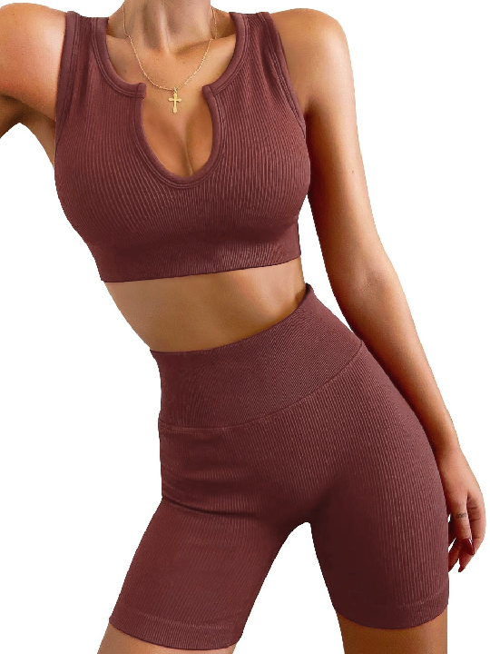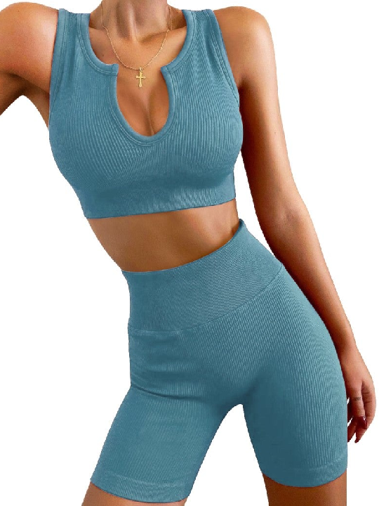 • Ribbed leggings and V-shaped sports bra: Slim fit, tuck in abdomen and lift buttocks perfectly to show your body curve. The special ribbed texture helps to keep it in place during exercise and is non-slip. There are two different collar designs, square cut and V-shaped.