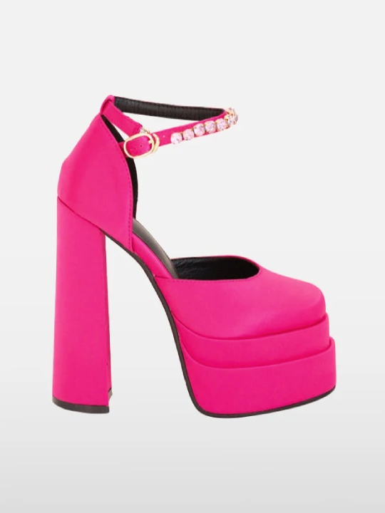 Шелковая обувь на платформе с круглым носком и толстым каблуком